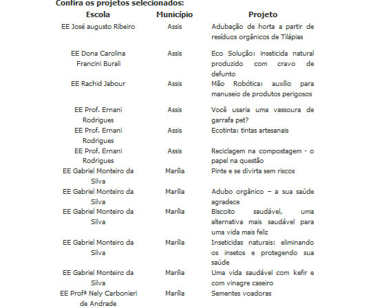 Agora, os projetos irão passar por uma nova análise por parte da equipe gestora da Feira de Ciências do Estado de São Paulo (FeCEESP), que selecionará os 30 projetos finalistas a serem divulgados em fevereiro de 2018.