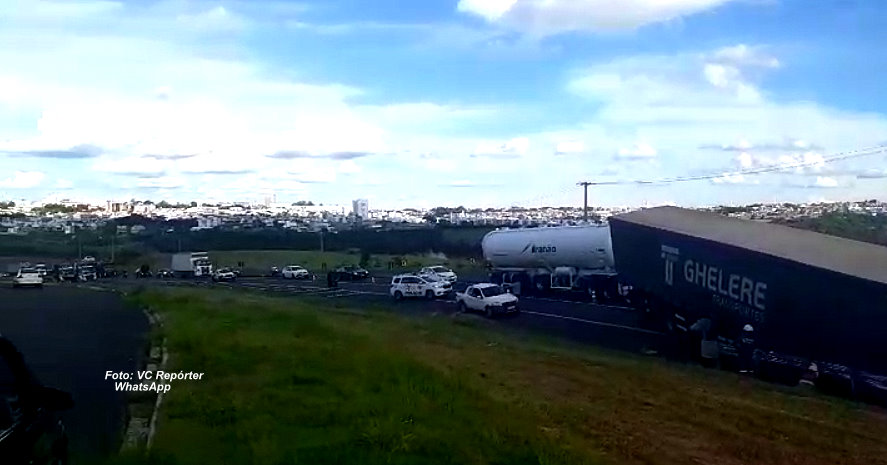 Uma equipe da concessionária Entrevias estava passando pelo local e conseguiu anotar a placa do caminhão.