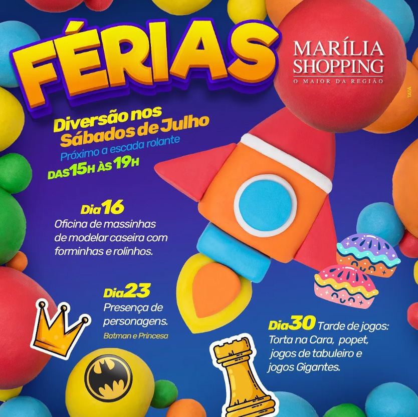 Além de descansar, o mês de férias é uma excelente oportunidade para curtir cada momento. Pensando nisso, o Marília Shopping reservou opções diferenciadas de lazer e entretenimento para ninguém ficar em casa e aproveitar ainda mais esse período.