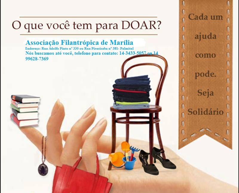 A Associação Filantrópica de Marília está arrecadando doações junto à comunidade para a realização do "bazar da pechincha" permanente em prol da entidade. O evento acontece em dois sábados por mês e em função do volume de retiradas, a entidade sempre precia de reposição no estoque.