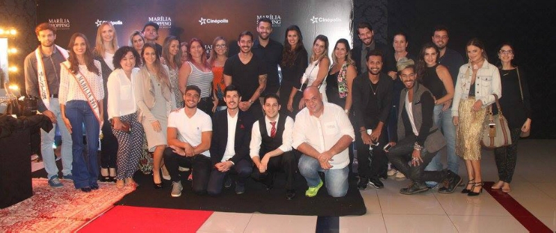 Equipe de marketing do Marília Shopping com o modelo Roni Mazon.