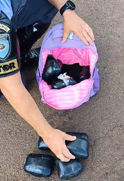 Durante a vistoria no interior do coletivo, os policiais encontraram 10 invólucros de haxixe dentro da mochila de uma passageira que ocupava a poltrona 47. Com o ticket de passagem, identificaram a donaq da mochila.