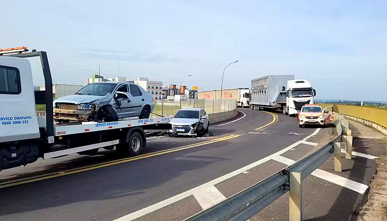 Com o impacto, dois passageiros de um dos automóveis e o motorista do outro tiveram ferimentos leves e foram socorridos pela concessionária responsável pela via. O pontilhão ficou interditado por quase duas horas, mas o trânsito já foi normalizado. As causas do acidente serão investigadas.