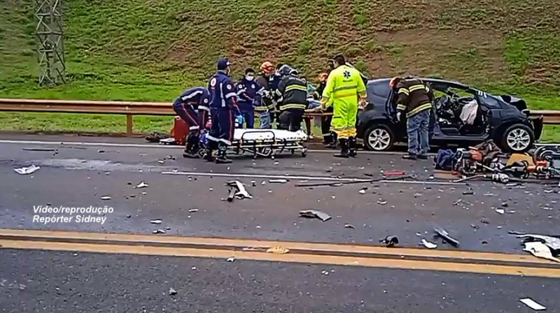 De acordo com a Polícia Rodoviária, a moto era conduzida por Simone Valverde, de 34 anos, e o carro por Daniel Dias de Lima, de 35 anos.