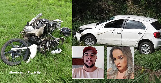 Os dois seguiam no sentido de Junqueirópolis - Tupi Paulista e, por motivos que ainda estão sendo apurados, o automóvel bateu na traseira da moto e em seguida caiu numa ribanceira.