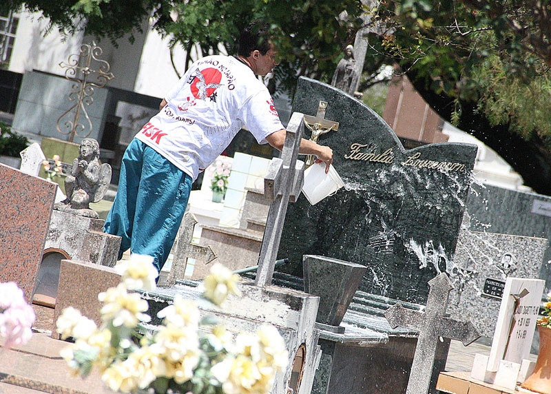 “É preciso evitar vasos com água por prevenção à proliferação do mosquito Aedes aegypti. Teremos várias caixas de alvenaria com areia grossa para servir a população. As flores deverão ser colocadas apenas em recipientes que não acumulem água, evitando, assim, que se tornem criadouros do mosquito transmissor da dengue e outras doenças. O indicado, é areia úmida”, explicou Maria José Corredato da Silva, coordenadora do cemitério.