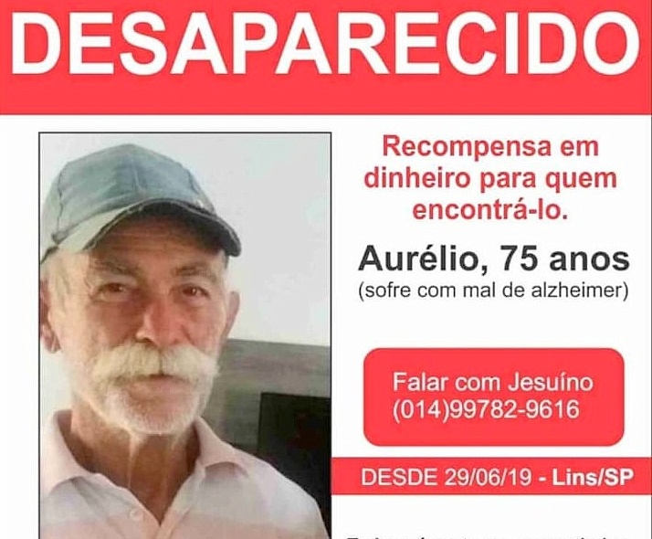 A vítima, que mora na zona rural de Lins, sofre do mal de Alzheimer e provavelmente pegou carona para ir até à cidade ou se perdeu em algum canavial nas proximidades do sítio.