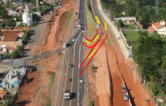 O desvio de obras utiliza uma das alças do retorno existente como uma via de mão-dupla, em pista simples, assim como realizado em outros segmentos da rodovia. Todo o desvio conta com sinalização de aviso de obras.