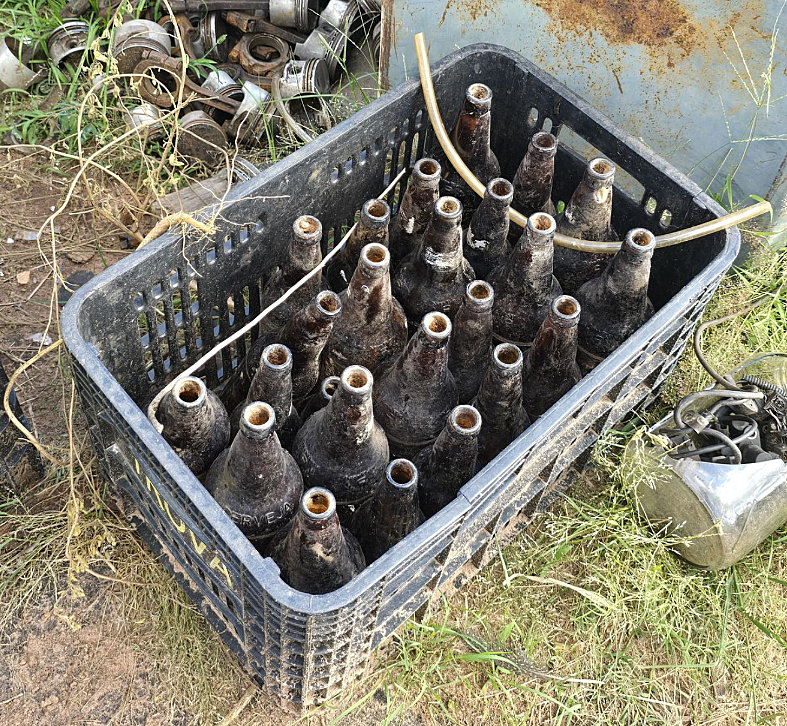 Também foram encontradas garrafas de vidro e outros recipientes expostos e posicionados de maneira irregular, contribuindo para o acúmulo de água e ampliando os riscos à saúde pública.