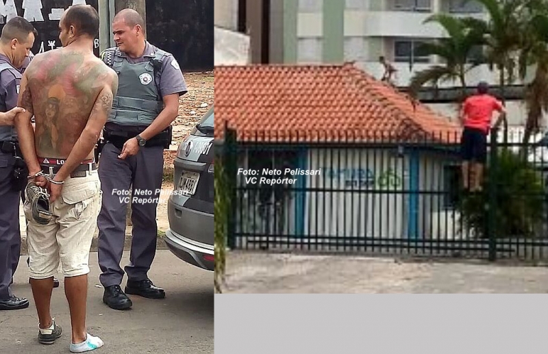 Mas, não deu certo. Minutos depois acabou sendo preso e identificado tanto pelas tatuagens como também pela bermuda que estava usando. Ele está neste momento na Central de Polícia Judiciária.