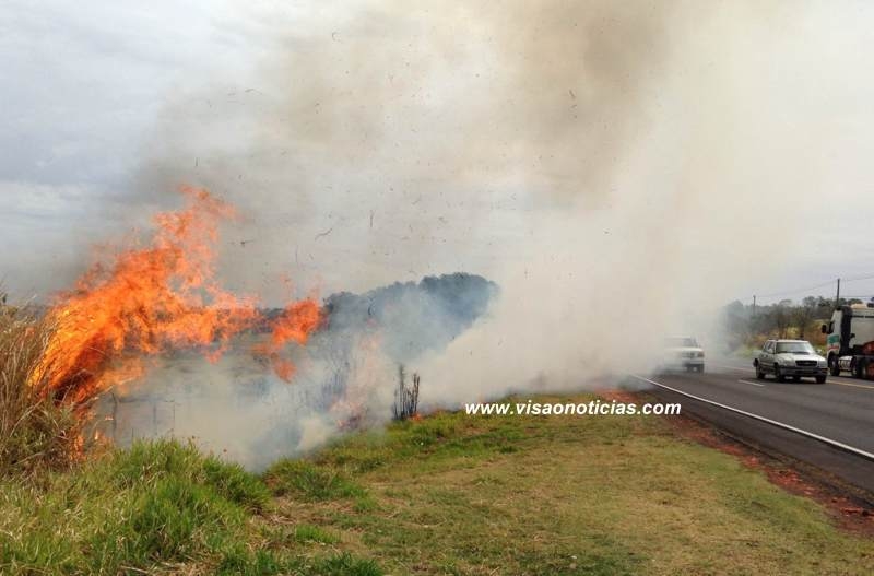 Mas, quando isso ocorre às margens das rodovias o risco é ainda maior. Foi o que a reportagem do portal Visão Notícias.com flagrou no final desta manhã. Como estava ventando muito, as chama propagaram rapidamente chegando a quase três metros de altura quando atingia um volume maior de capim.