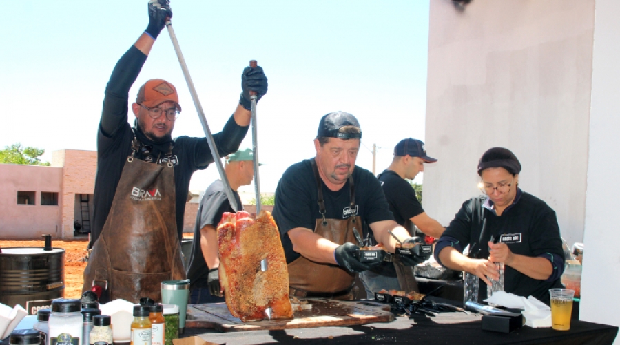 Na tarde de sábado a imobiliária promoveu um grande churrasco festivo para convidados e compradores. Eles puderam conhecer de perto as obras avançadas de infraestrutura.