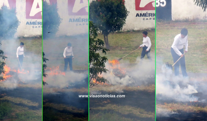 Nesta tarde, o portal Visão Notícias flagrou uma situação inusitada, próximo ao Marília Shopping: uma moradora, revoltada com o foco de incêndio perto de sua casa, resolveu por conta própria fazer o trabalho dos Bombeiros: como não tinha um abafador (equipamento usado para esse tipo de tarefa) decidiu usar a própria vassoura para combater o fogo.