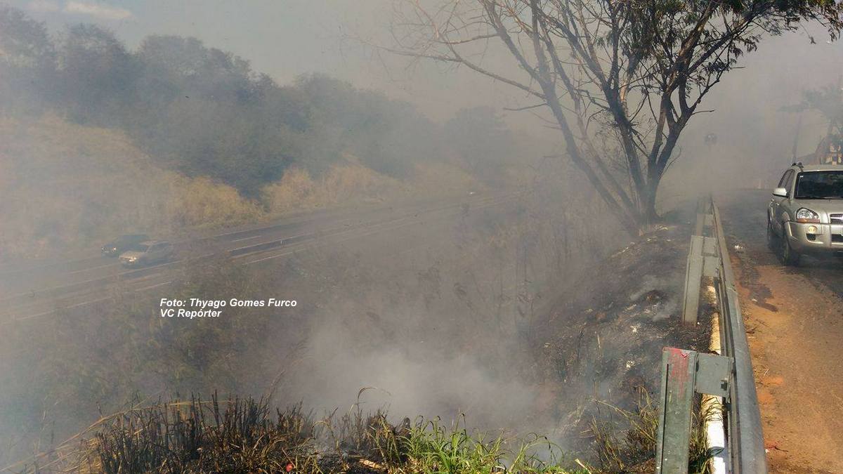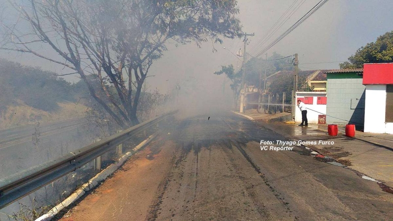 Vegetação pega fogo: transtornos e perigo.