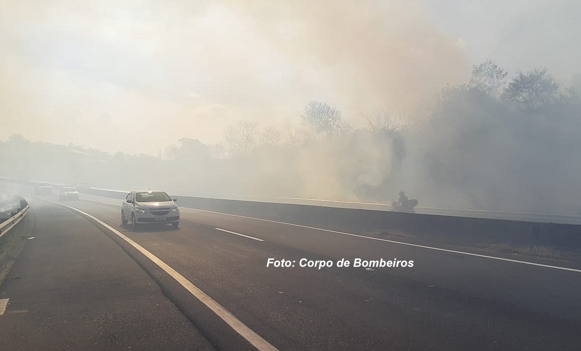Perigo também para os motoristas que trafegavam pela estrada, já que a visibilidade ficou muito reduzida. Um homem que cuida de uma área naquela região teve que ser retirado às pressas.