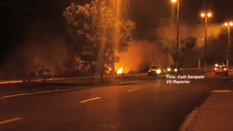 A rotina de apagar focos de incêndio pela cidade e também às margens da rodovia prosseguiu na noite desta sexta-feira (30) pelas equipes do Corpo de Bombeiros em