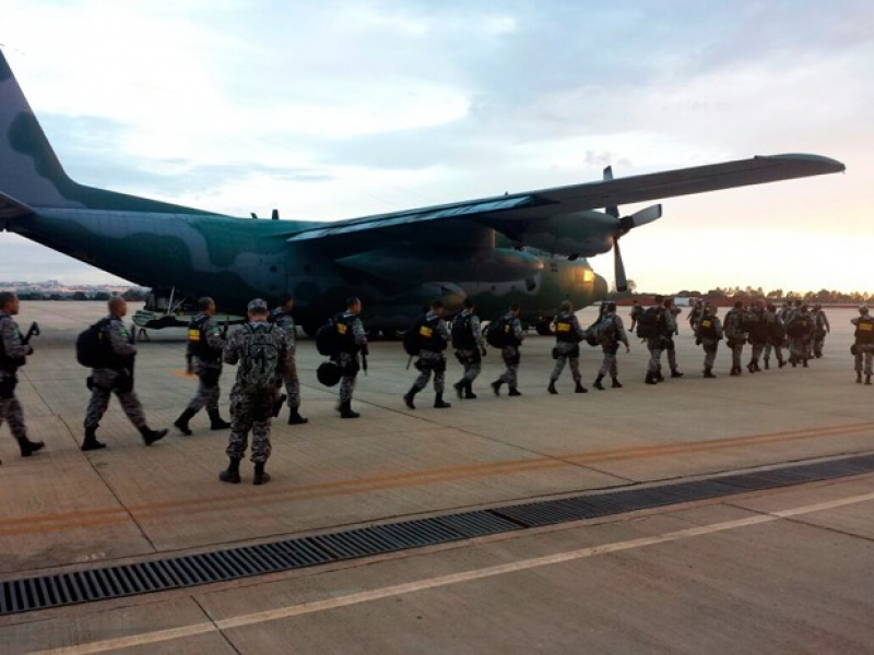 Os militares da Força Nacional chegaram em um avião Hércules da Força Aérea Brasileira (FAB) e seguiram para o local onde ficarão alojados e, em seguida, já iniciam o trabalho nas unidades prisionais.