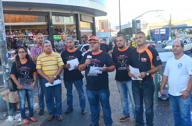Após a panfletagem, os sindicalistas se reuniram na "ilha", próximo ao terminal rodoviário urbano da cidade, onde se manifestaram, alertando os demais trabalhadores sobre essa situação considerada preocupante.