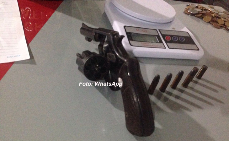 Foi feito um cerco com as viaturas de Força Tática. O acusado, conhecido como "moringa", foi preso. Durante abordagem, foi localizado em sua mochila um revólver calibre 32, com seis munições intactas e aproximadamente 10 quilos de maconha.
