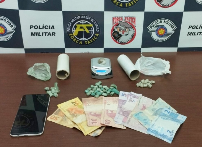 Em abordagem, os policiais localizaram com os mesmos, que são menores de idade, 20 porções de crack embaladas para o comércio, R$109 em notas fracionadas e um aparelho celular.
