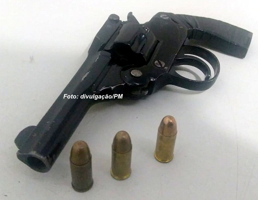 O condutor, identificado apenas como M.H.S. foi abordado. Na busca no interior do carro, os policiais militares localizaram um revólver calibre 32 municiado com três cartuchos intactos.
