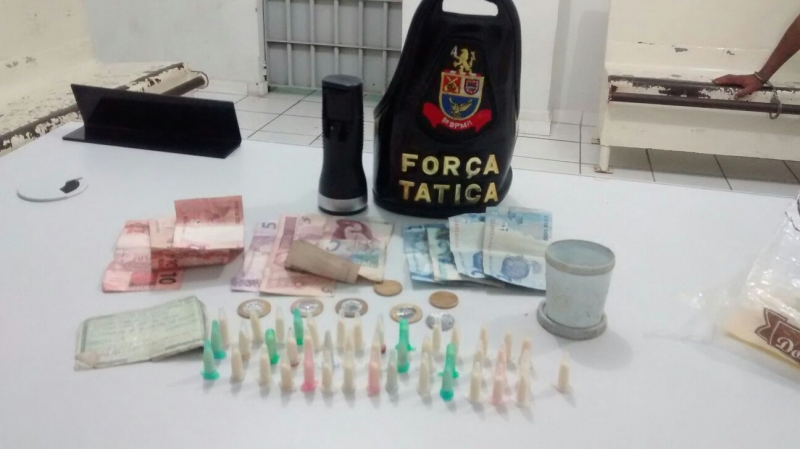 De acordo com informações da PM, os patrulheiros receberam informações que em uma viela no bairro, uma pessoa estaria promovendo o tráfico de drogas. Em diligência ao local, flagraram o indivíduo em posse de um pote contendo 43 pinos de crack e R$ 63 em dinheiro, proveniente da venda do entorpecente.