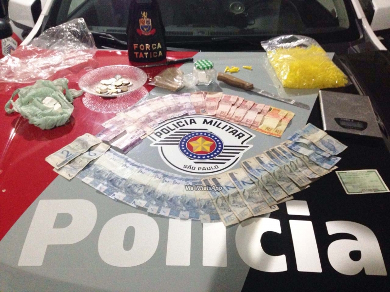 Segundo informações do SubTenente Lisboa, as equipes se dirigiram para a região após o COPOM informar a ocorrência de homicídio que havia ocorrido há pouco. Durante patrulhamento buscando o autor do crime, um jovem pôs-se a correr após avistar uma das viaturas. Na rua José Pelegrini ele acabou detido. Dentro de sua residência, uma pedra bruta de crack pesando mais de um quilo, 400 gramas de cocaína, 1000 pinos vazios, 20 pinos de crack, uma balança digital e R$ 229 foram encontrados. No mesmo cômodo onde estavam as drogas, uma jovem e um bebê de apenas um ano dormiam.