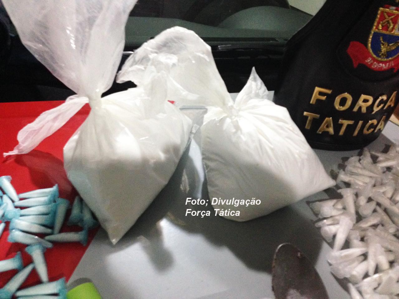 Um rapaz de 27 anos foi preso em flagrante pela Força Tática da Polícia Militar quando se preparava para entregar um grande carregamento de cocaína que seria