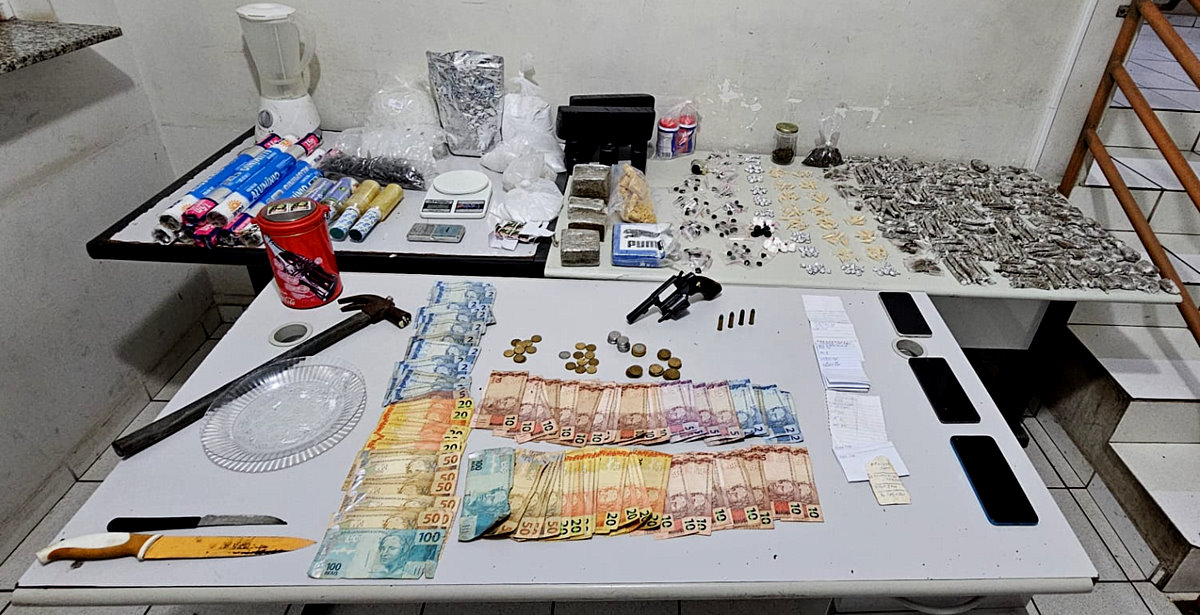 Além disso, foram localizados um revólver Calibre 38 com quatro munições intactas e material para o preparo das porções dos entorpecentes. O trio foi autuado em flagrante na Central de Polícia Judiciária e ficou à disposição da justiça.