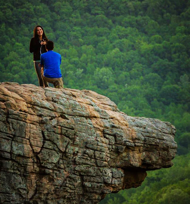 O fotógrafo Jacob Peters foi o encarregado dessa tarefa. Em uma publicação em seu Facebook, ele contou que foi contratado pelo futuro noivo que faria uma surpresa para sua namorada, pedindo a mão dela em casamento em cima de um despenhadeiro no estado do Arkanas, na hora do nascer do sol. Para não estragar a surpresa, o fotógrafo deveria ficar de longe e apenas enviar as fotos no dia seguinte. Tudo muito romântico.