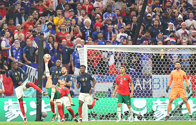 Era o primeiro gol da França, que saiu mais rápido do que a imensa torcida esperava (cerca de 95% dos torcedores presentes apoiavam os marroquinos).