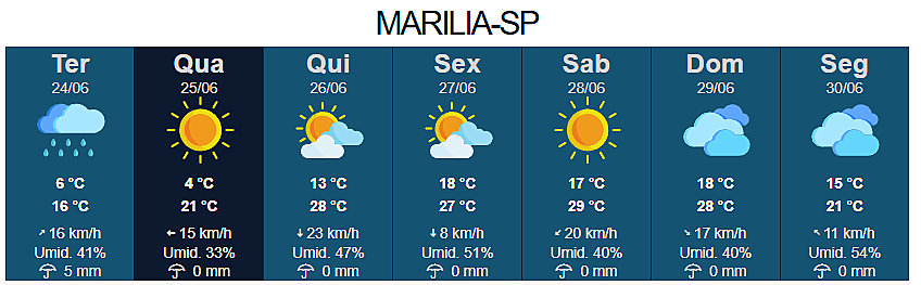 Previsão para os próximos dias em Marília:
