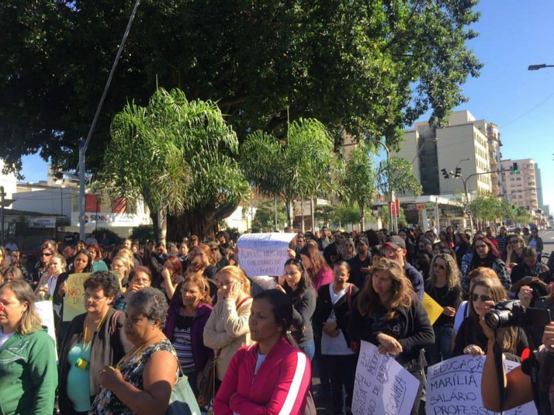 Os servidores públicos municipais de Marília entraram em greve nesta manhã (14). Centenas deles se concentraram em frente à Prefeitura, na avenida Sampaio Vidal. Posteriormente, eles saíram em passeata pela rua São Luiz e demais vias públicas da área central.