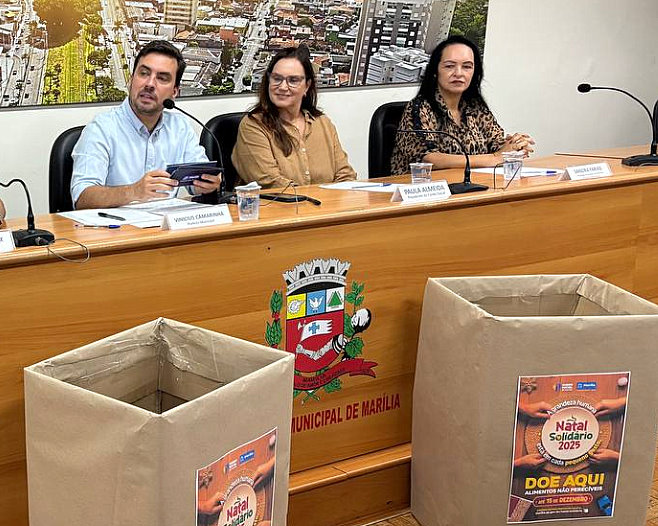 O Fundo Social de Marília realizou ontem o lançamento oficial da campanha Natal Solidário 2025, que tem como tema “A grandeza humana está em cada gesto”. A campanha conta com apoio das secretarias municipais da Cultura e de Esportes, Lazer e Juventude, além de vários outros setores municipais.