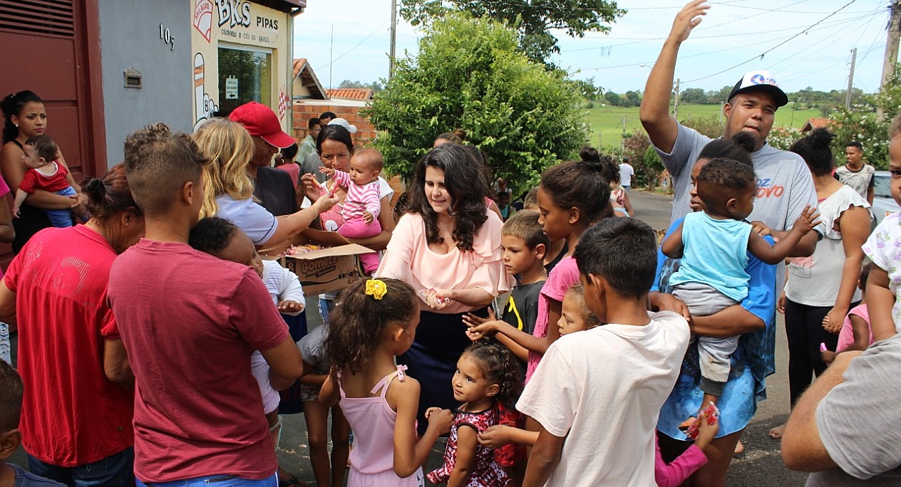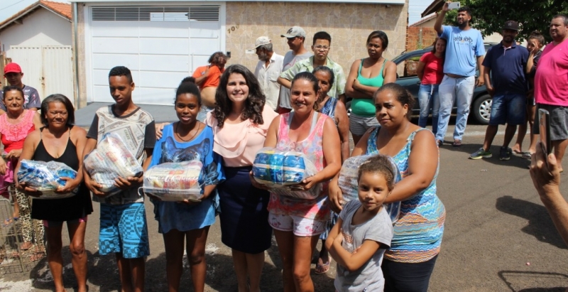 O Fundo Social de Solidariedade do Município de Marília entregou cestas básicas para famílias do bairro Trieste Cavichioli, que fica ao lado do distrito de Padre Nóbrega, zona norte da cidade. As crianças que estavam no local receberam doces.