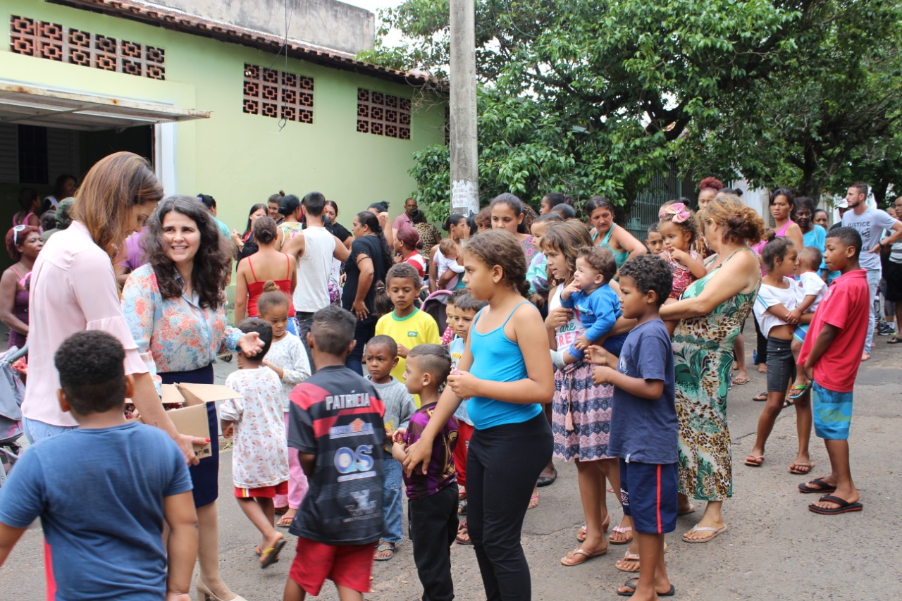 A equipe do Fundo Social foi recepcionada pela presidente da associação de moradores, Neusa Gomes, e pelas famílias beneficiadas, sendo que várias crianças também compareceram e receberam um kit de doces do Fundo Social.