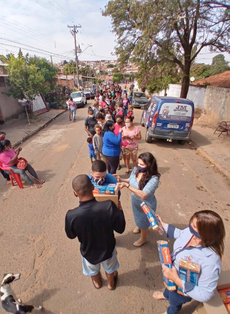 A entrega foi realizada com a entrega de senhas e obedecendo o distanciamento social, além do uso de máscaras de proteção facial e de álcool em gel.