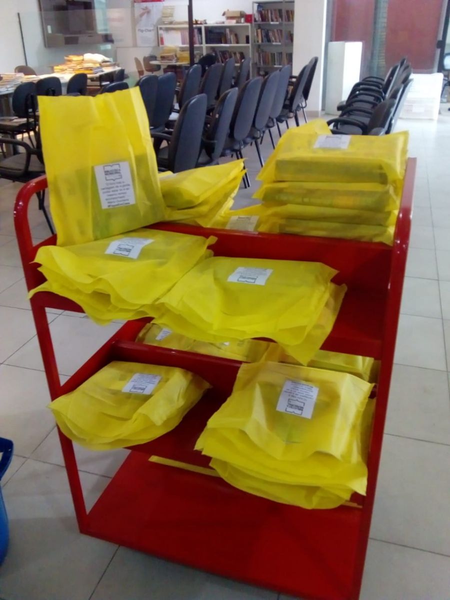 A biblioteca montou 100 kits, com três livros em cada, para repassar ao Fundo Social, que efetuará as doações. Foram selecionados livros para todas as idades.