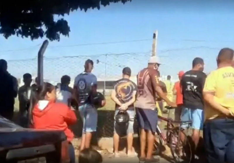 Nas imagens, é possível ver os jogadores no campo e muitos torcedores aglomerados do lado de fora, assistindo à partida pela grade. Os moradores não estavam utilizando máscaras de proteção, que são obrigatórias.