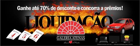 Teve início nesta quinta-feira, com grande sucesso, a tradicional liquidação da Galeria Atenas, com descontos que podem chegar a até 70%, além do sorteio de brindes, inclusive um carro. A promoção prossegue até sábado.