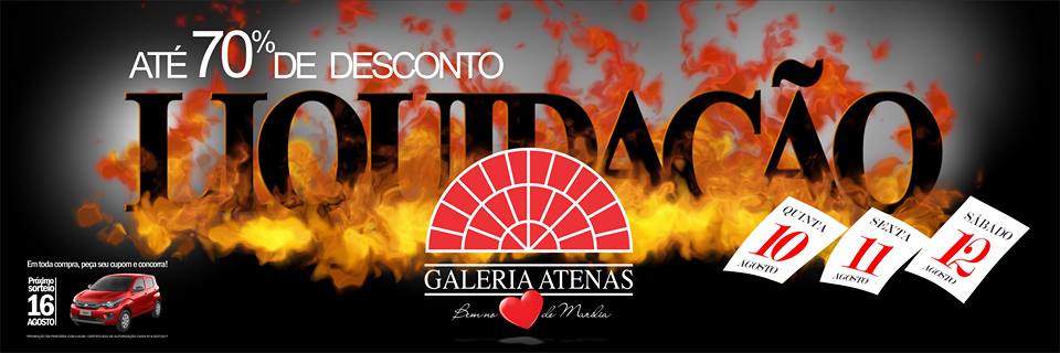 A Galeria Atenas, o primeiro centro de compras de Marília, realiza a partir desta quinta-feira (10) a sua tradicional liquidação, com descontos que podem chegar a até 70%, além do sorteio de brindes, inclusive um carro.