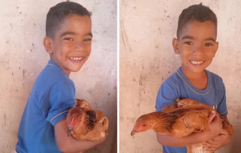 Uma galinha de estimação tem sido a "terapia" de um menino diagnosticado com Transtorno do Espectro Autista (TEA) de grau leve. Juju, como foi batizada, já virou membro da família. A ave alegra e estimula ganhos emocionais e físicos de Nícollas Henrique Santos Pereira, de 4 anos.