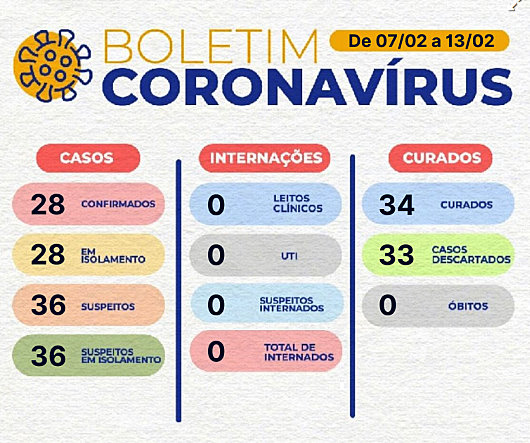 Além disso, foram 94 casos suspeitos desde o começo de janeiro (60 deles nas últimas duas semanas), bem como 110 exames de Covid-19 descartados.