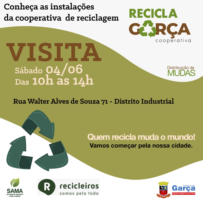 A Cooperativa “Recicla Garça” está localizada na Rua Walter Alves de Souza, nº 71, Distrito Industrial. Contato: (14) 99680-7771, com Tamires Carvalho.