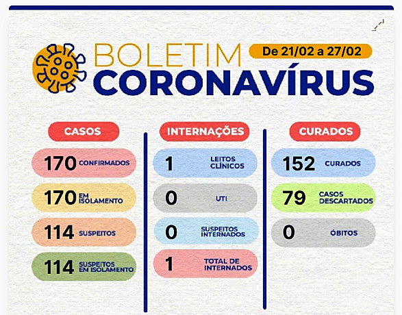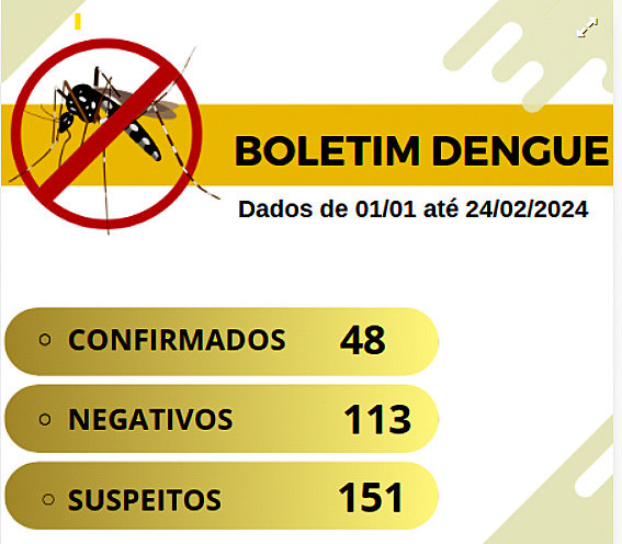 Nestes praticamente dois meses do ano, foram 430 notificações positivas, 154 suspeitos e 240 moradores curados. Em 2024, uma pessoa morreu em decorrência do coronavírus.