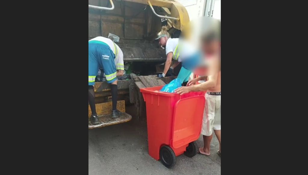 Enquanto os profissionais da coleta procuravam o valor, o morador foi flagrado escorado a um contêiner, chorando. Com o dinheiro em mãos, ele abraçou a mulher em agradecimento. Os trabalhos foram retomados depois da devolução.