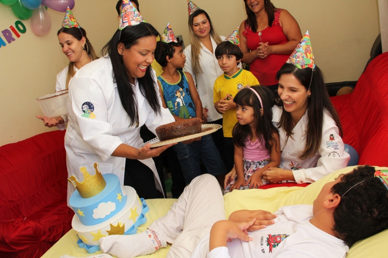 Os integrantes da USF (Unidade de Saúde da Família) da Secretaria da Saúde fizeram questão de comemorar os 12 anos do garoto, em sua casa, na rua Alexandre Chaia, no Jardim Marajó.