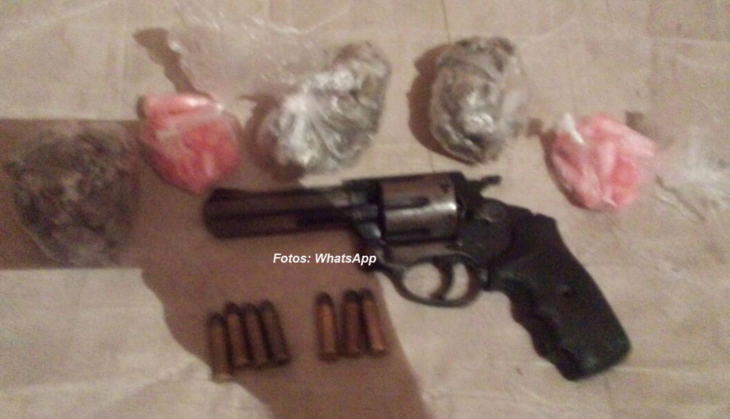 Os PMs acabaram encontrando diversas porções de maconha e cocaína escondidas debaixo do colchão de uma das camas, além de um revólver calibre 38 e muita munição.