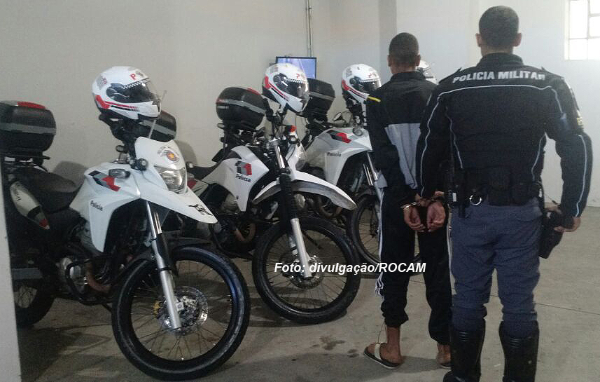 Os policiais militares da ROCAM (Ronda Ostensiva Com Apoio de Motocicleta) faziam uma operação pelo bairro para tentar localizar motocicletas furtadas quando flagraram o momento em que o menor entregava uma porção de droga para um usuário. Como estava de costas, só percebeu a aproximação quando as motocicletas já estavam bem perto dele.