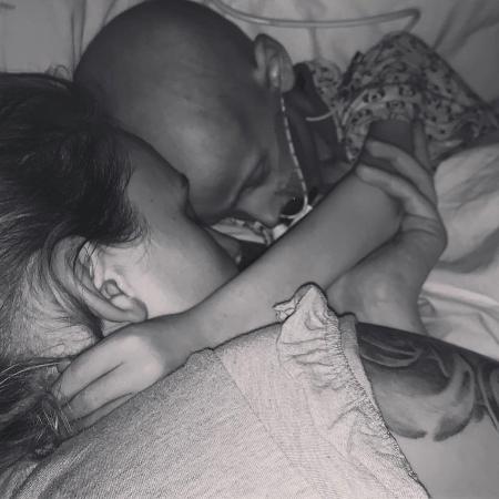"Como posso sentir tanto sua falta quando ele está deitado ao meu lado? Mas eu sinto. Sinto a falta dele. Sinto falta de ter uma conversa, de abraçá-lo, sem causar dor. Sinto falta de apertá-lo e de beijá-lo por inteiro. Sinto falta do seu sorriso. Por favor, rezem por um milagre. Abracem seus bebês, abracem e beijem muito. Vocês não percebem quanta sorte têm", compartilhou.